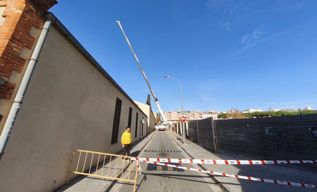 Avui dimecres i demà dijous queda tallada la carretera de Premià de Dalt entre Jaume Balmes i Indústria a causa dels treballs de col·locació de la primera biga jàssera que ha de sostenir la futura pèrgola fotovoltaica de la plaça Salvador Moragas. Fets els treballs de micropilotatge i els treballs posteriors de preparació de l’estructura, comencen els treballs en alçat previs a l’arribada de la coberta, i que principalment consisteixen a muntar sobre les naus del Museu de l’Estampació aquestes bigues de grans dimensions. Ens ho explicava fa unes dies el regidor d’urbanisme Antoni Subirà, que ens anunciava que ara comença la part més “espectacular” de les obres: