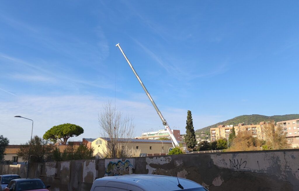 Comença la part “espectacular” del muntatge de la pèrgola fotovoltaica a Salvador Moragas