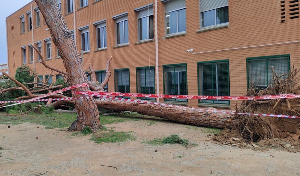 Dos arbres caiguts, un d’ells un pi de 50 anys de grans dimensions, danys en un tercer arbre, un aparell d’aire condicionat trencat, dues claraboies volant i desperfectes en el plàstic dels hivernacles i al tendal de les graderies de les pistes. És el recull de danys materials que va deixar la ventada del 12 de febrer a l’Institut Premià de Mar, i que el centre ha calculat que costarà uns 15.000€. Ho ha calculat, en la major part dels casos, amb els pressupostos dels diferents professionals que ara s’ocuparan de tallar els arbres i retirar-los o de reparar les diferents infraestructures. Escoltem el director del centre Salva Redón: