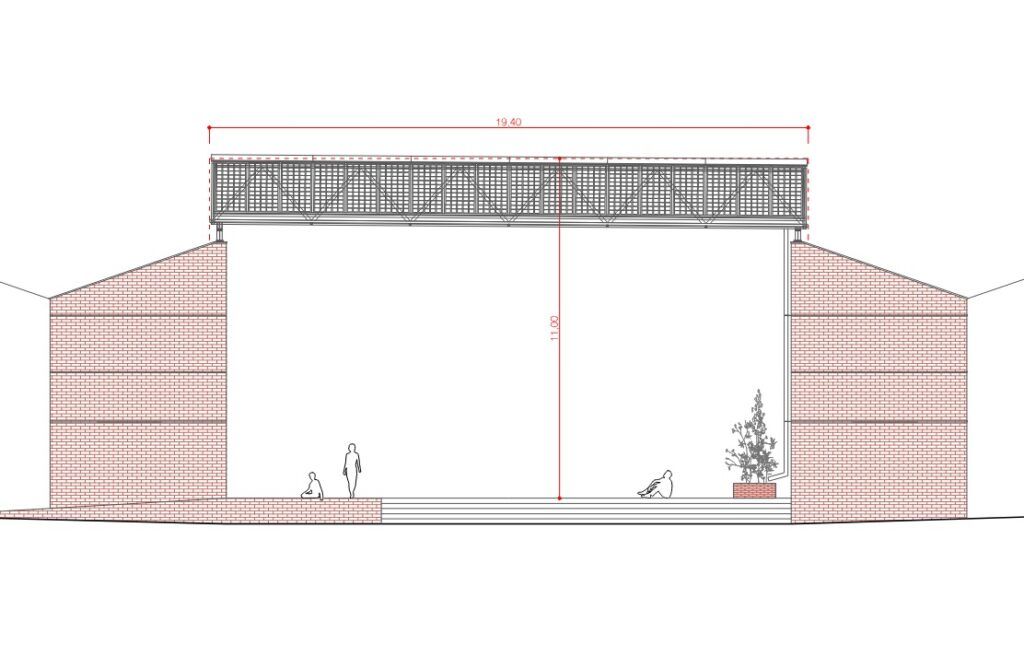 Amb els treballs de micropilotatge acabats, les obres de construcció i instal·lació de la nova coberta fotovoltaica a la plaça Salvador Moragas, entre les naus del Museu de l’Estampació, ja han sortit a l’exterior: des de la setmana passada es fan feines i es col·loquen peces al capdamunt dels pilars de les naus (que ara ja s’han reforçat pel subsòl) perquè s’hi puguin posar a sobre les bigues que sostindran la nova coberta.
