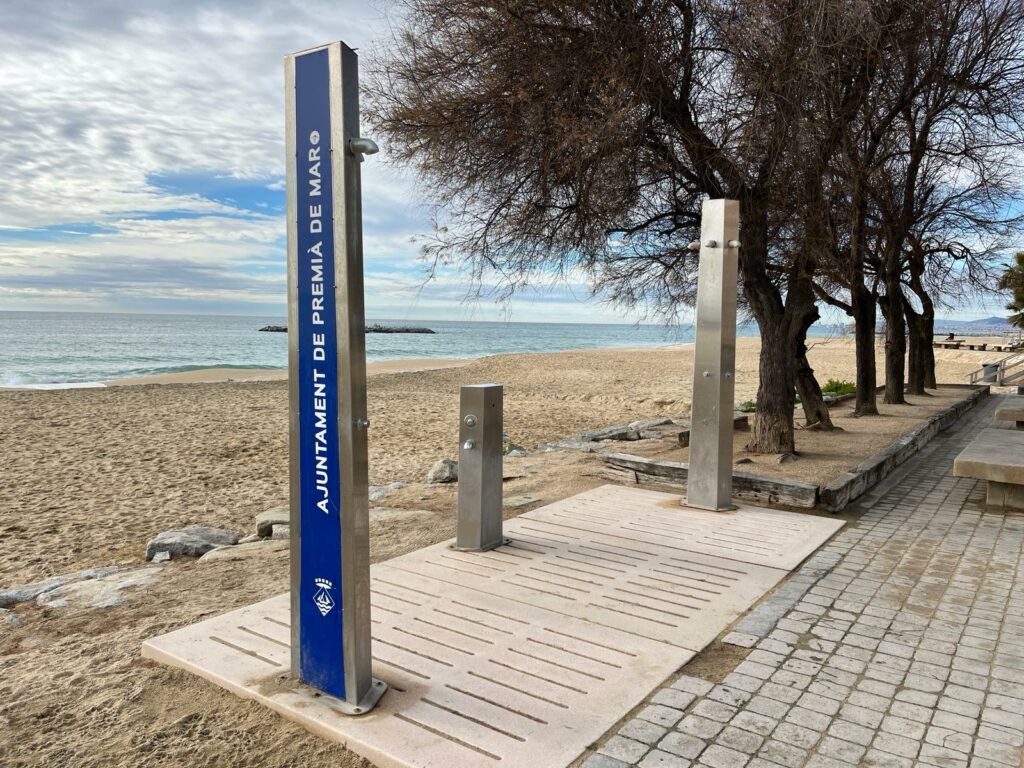 Fotografies de les dutxes de de la platja premianenca. Foto: Premià Mèdia