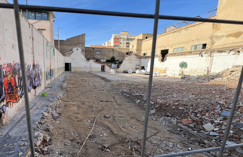 Un aparcament temporal de zona blava, possible opció per al solar que quedarà quan acabi la primera fase de l’enderroc de Can Sanpere